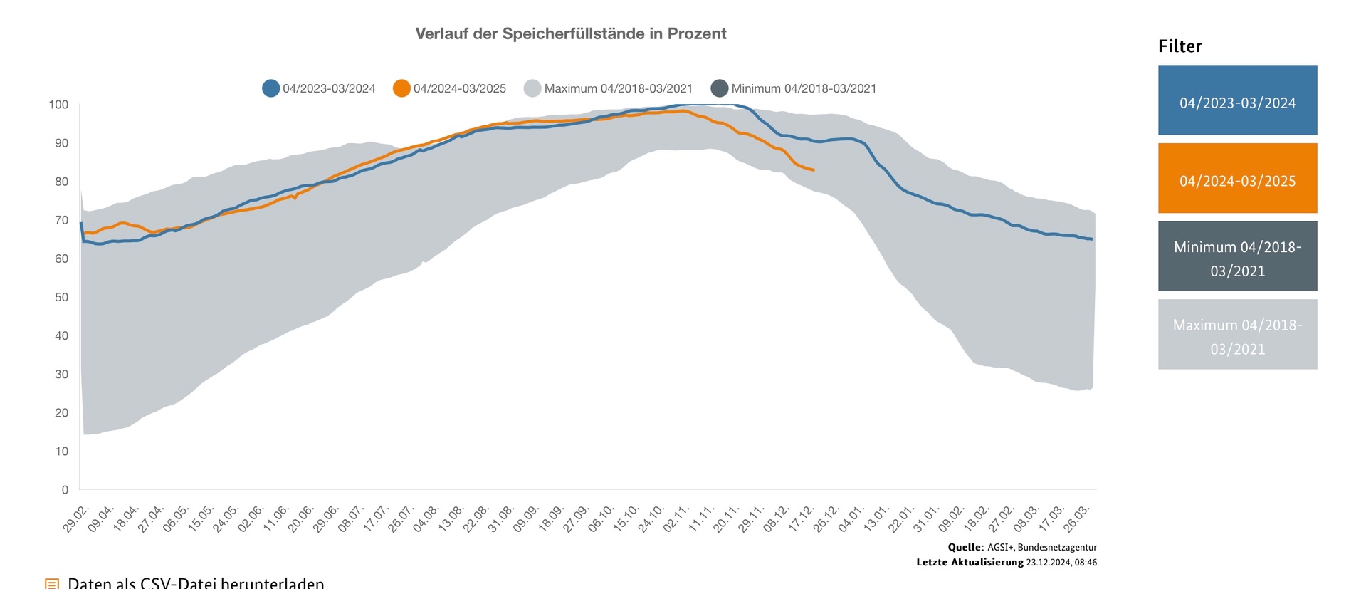 Zur Erinnerung, wenn im Januar nix mehr aus RU kommt, kann es ganz schnell gehen, da D verpflichtet ist, halb Europa mit seinem Gasnetz und seinen Reserven zu beglücken.