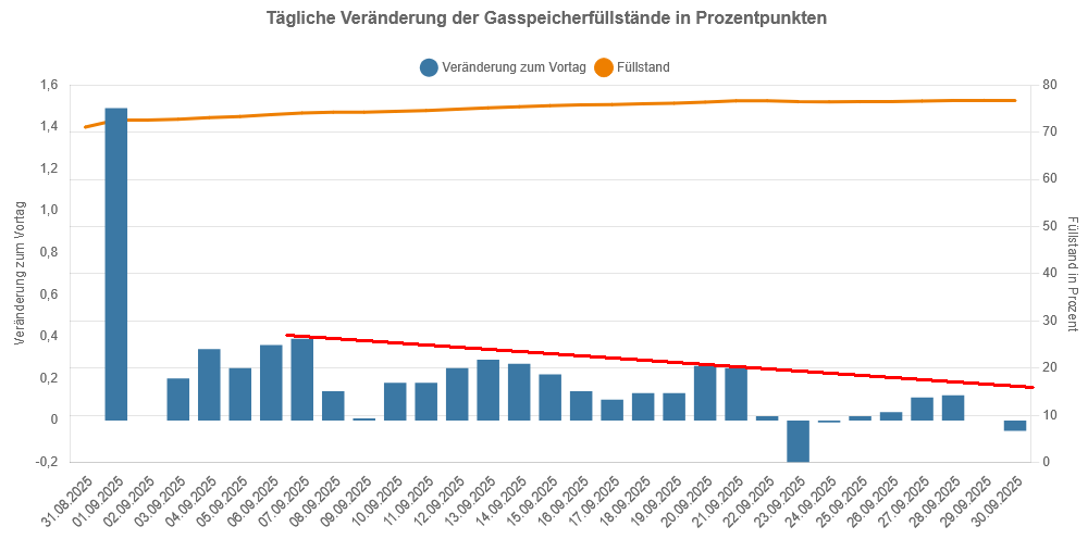 Deutschland hat heute 0,1% ausgespeichert…..wir sind bei 76,4%.