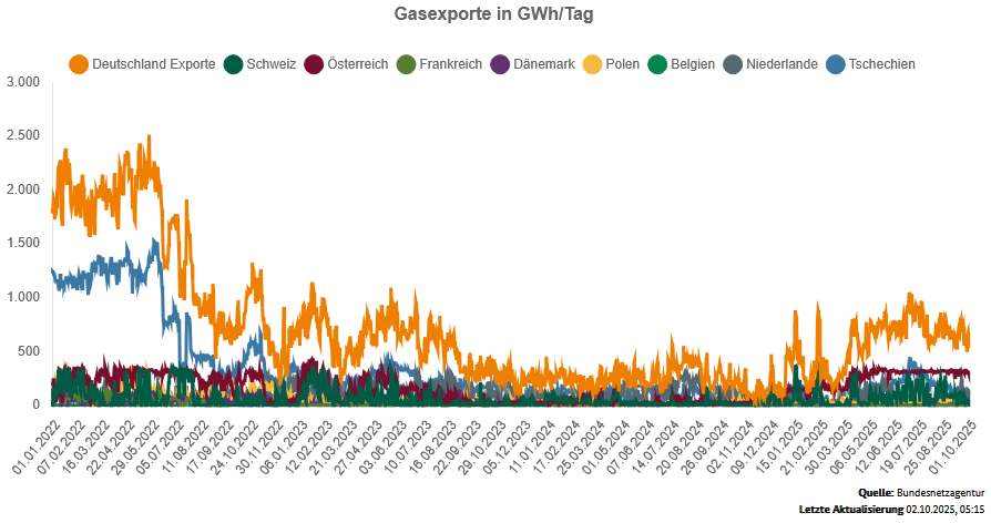 Bundesnetzagentur - Aktuelle Lage Gasversorgung - Gasexporte in GWh/Tag