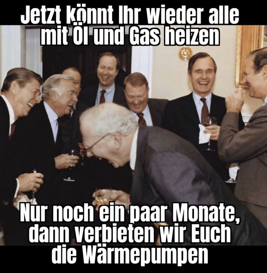 • Die inzwischen vollständig abgeschlossene Totalverblödung deutscher Systemdeppen sieht man aktuell übrigens an Wärmepumpenbesitzern, die auf sozialen Medien wegen der Iran-Katar Sache hämisch den kommenden Gasnotstand feiern.