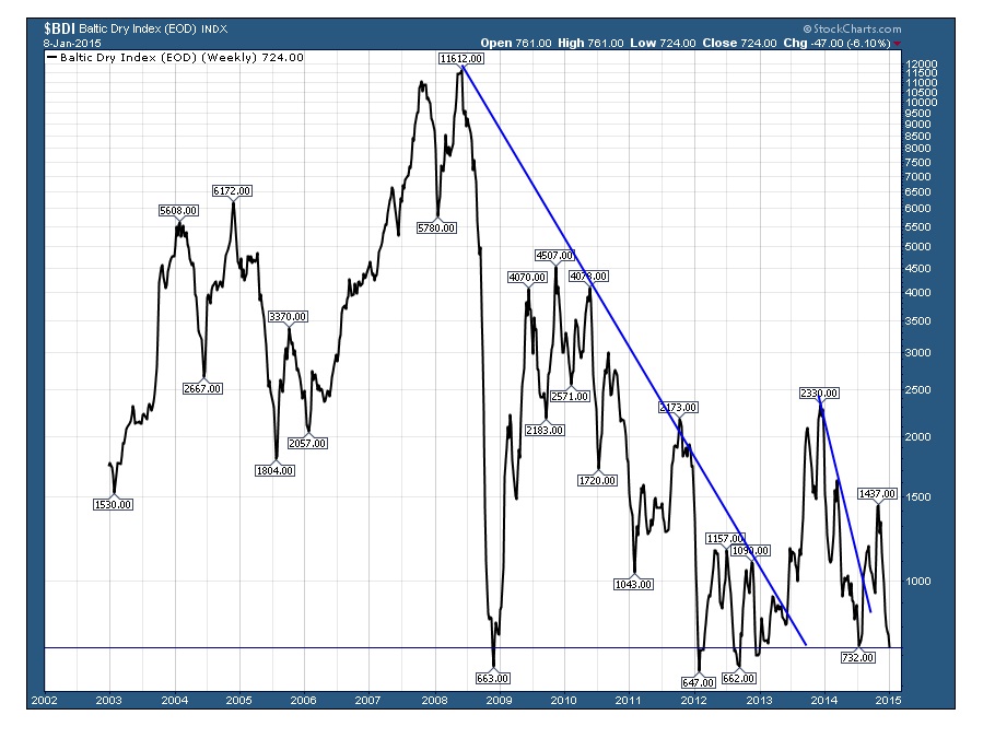 Fazit: Ein Baltic Dry Index wie derzeit UNTER 800 Punkten zeigt an, dass viel zu wenig transportiert wird, um Wirtschaftswachstum für 2015 zu signalisieren!