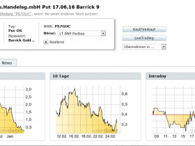 Der Barrick Put ist jetzt exakt auf Kaufniveau (das heisst er hat immerhin bisher den Spread reingeholt) und hat sich noch nicht entschieden, ob er ein Fehlinvestment oder die tief gehängte Prozent-Hängematte für den nächsten Edelmetall-Wert im Depot werden will! :D