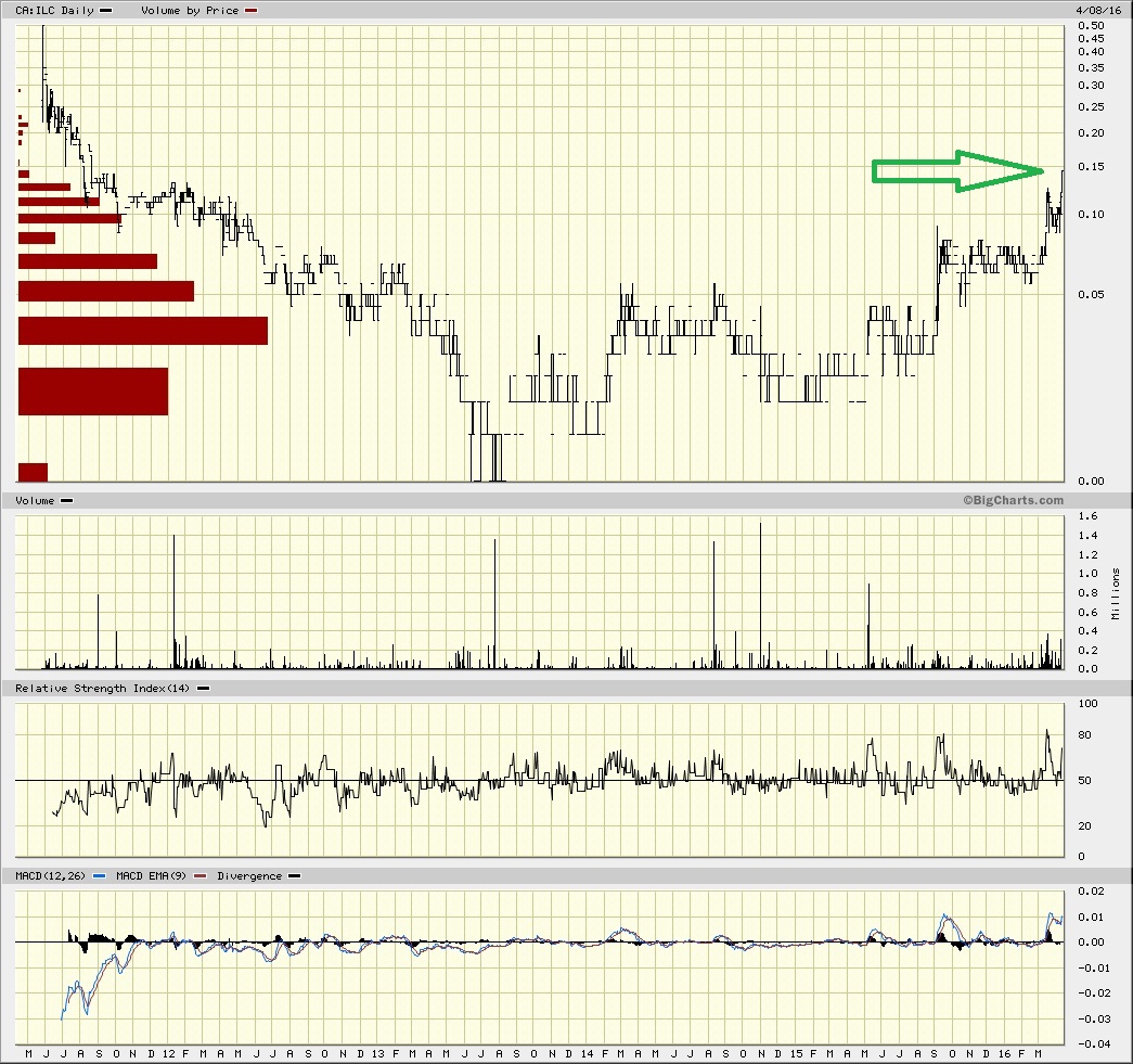 Zusammen mit Ultra Lithium (ULI) ist die International Lithium Corp., (ILC) in den paar Tagen, seit ich sie habe, mein bester Wert aus dem Lithium Bereich.