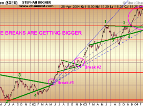 wen es interessiert, hier entstehen nun immer mehr charts die man tag für tag LIVE betrachten kann, um Treffergenauigkeit oder sonstwas zu verfolgen. Der USD zB steigt wider Erwarten über die obere Schenkelbegrenzung. Für mich: Fake-Breakout. ansonsten: FEHL-Prognose. Viel Spass! http://stockcharts.com/def/servlet/Favorites.CServlet?obj=ID787399 und hier werden Woche für Woche neue CHARTS von mir reingestellt und erläutert (allerdings nur auf Englisch): http://www.financialsense.com/fsu/editorials/bogner/charts/022704.html