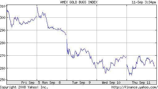• Beim HUI gehts wirklich runter auf 280....dass hab ich befürchtet aber nicht damit gerechnet......mache keine Prognosen mehr......vom Gefühl her ist jetzt der Tiefpunkt da... gestern die Minen wieder abgewatscht, POG und POS relativ unbeeindruckt.....bau im Moment Cash auf und halte....gekauft wird derzeit nix mehr aber auch nix verkauft ;) ....kehraus hab ich die letzen Wochen gemacht und alle Hoffnungslosen rausgeschmissen.....von dem was ich jetzt noch halte bin ich überzeugt....