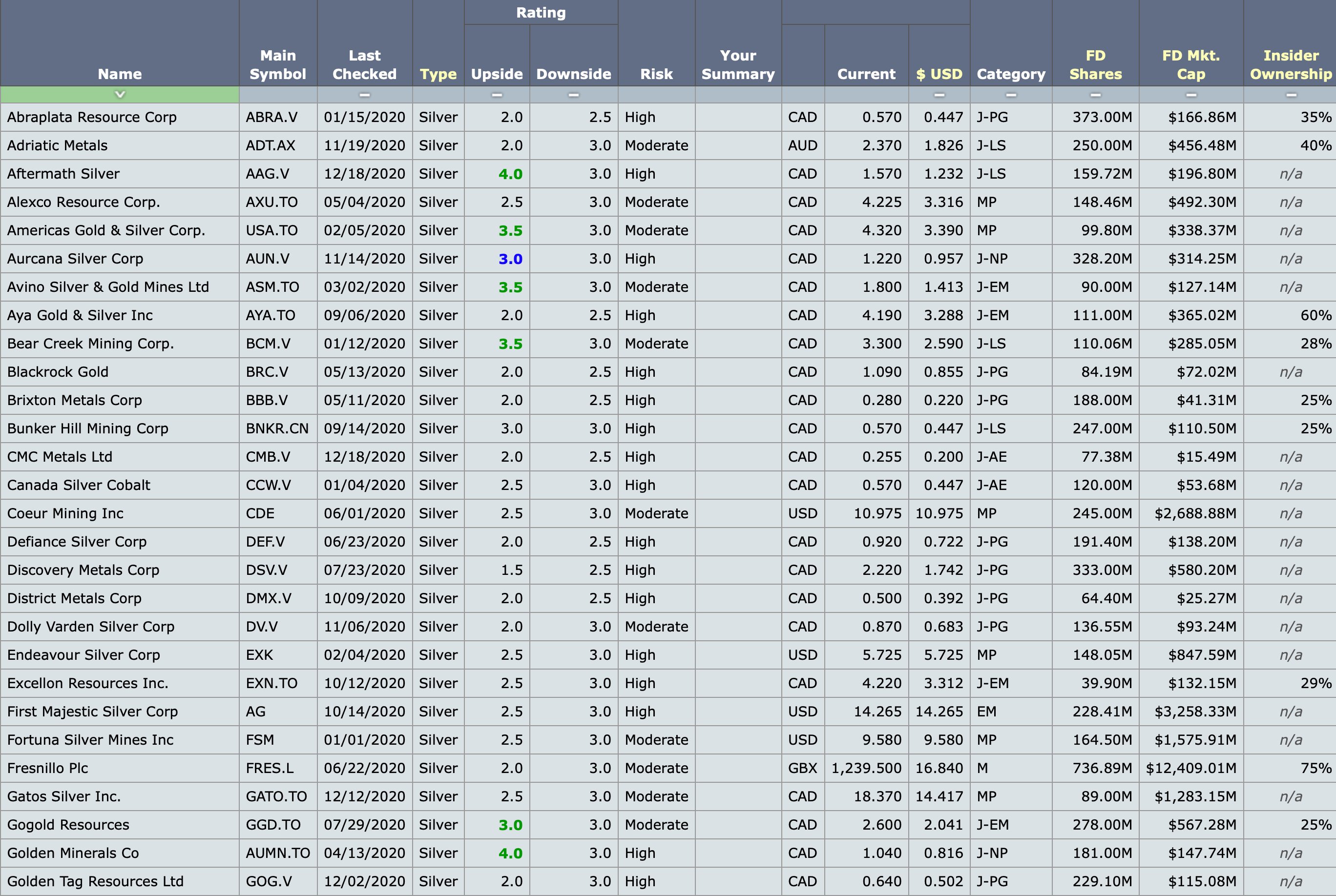 • Hier mal wieder ne Liste von Don Durrett zu Silber Aktien