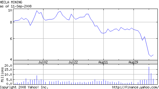 ...I have decided to limit this article to cover only those companies that will have substantial silver production in 2009; that is, more that just test mining. Therefore, of the eleven companies covered in November 2007, I have chosen to drop ECU Silver and Genco Resources, while adding Hecla and Coeur D’Alene....