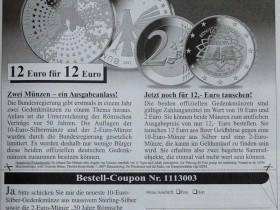 Neue Bestellmöglichkeit für die 12 Euronen (10 EUR + 2 EUR "Römische Verträge").