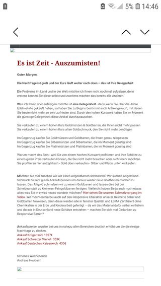 Interessant wie der lokale (Gold-) Markt sich im internationalen Umfeld verhält. Waren vor einiger Zeit die Aufpreise zum POG extrem, weil am Markt eine Mangellage herrschte, haben wir jetzt "Negativzinsen". Die ersten acht Positionen sind günstiger als der POG. Der physische Markt wird aktuell überschwemmt mit privaten Verkäufen. Die Händler sind größtenteils vollgelaufen, der Großhandel läuft aktuell voll und zum Schluss stehen in Deutschland noch die Scheideanstalten als Abnehmer bereit. Danach nur noch das Ausland. Ich bin gespannt wie es weiter geht.