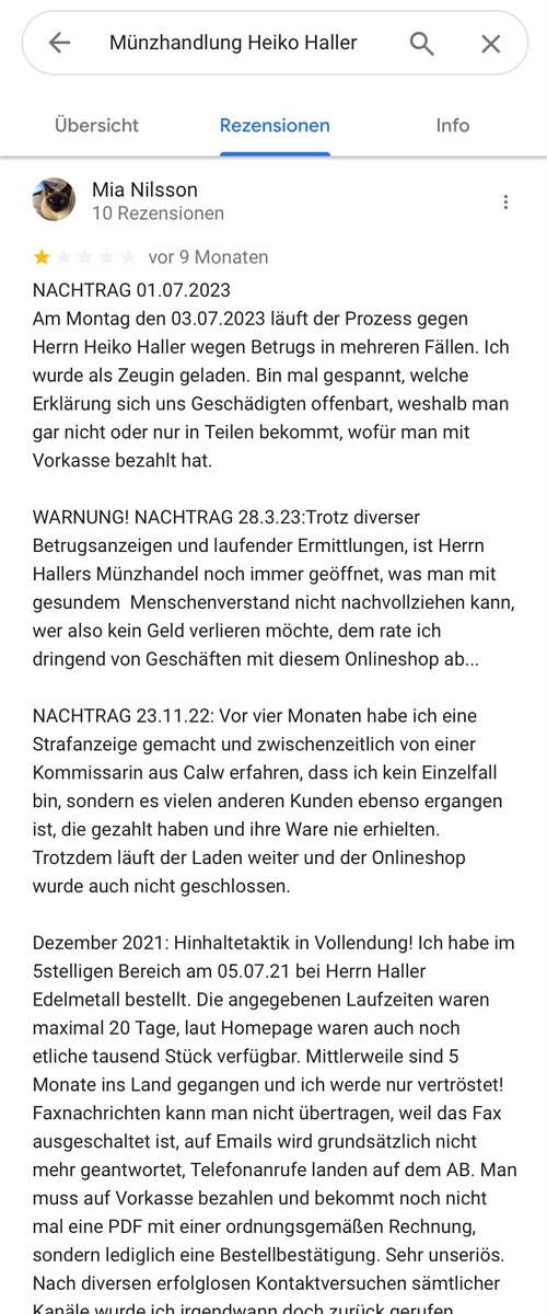 Na dann mach ich auch mal Werbung mit Gold unter Spot (derzeit 36€ darunter), und zwar bei Haller: