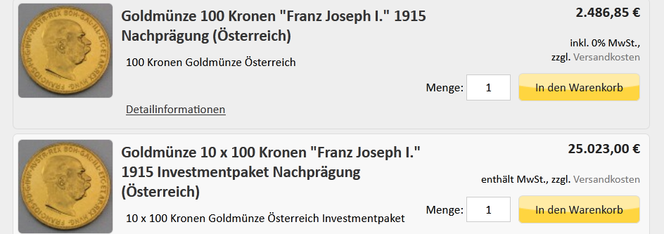 Sovereigns und US-Dollars nicht so günstig aber von irgendwas müssen die ja auch leben