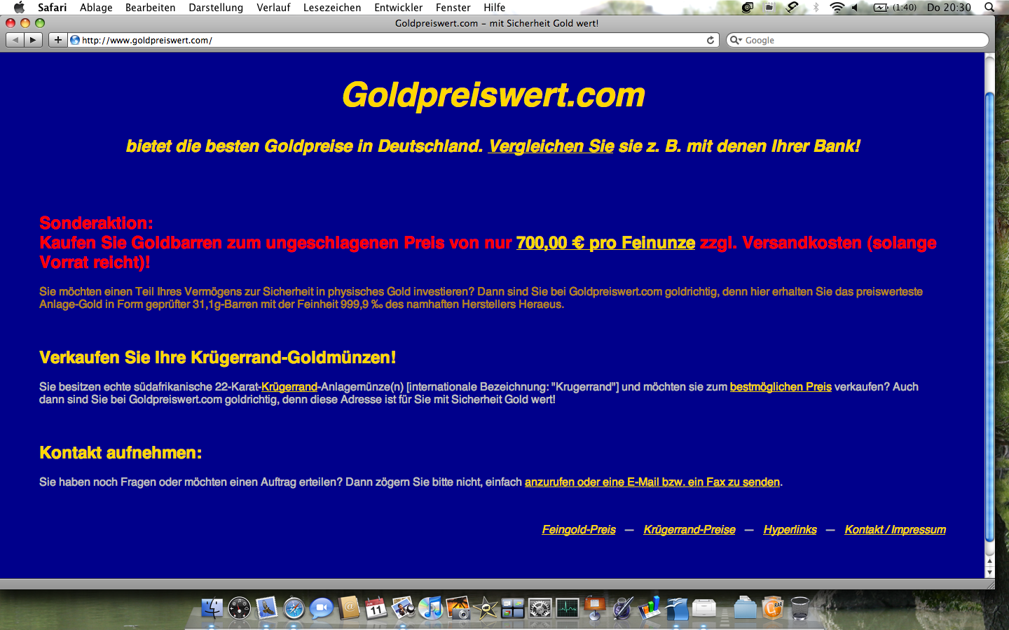 also wenn ich das so lese, dann kauft er am freitag von 10:00 Uhr bis 18:00 Uhr für € 708 Krügerunzen an (und lässt noch kostenlos von einem Wertelogistiker abholen) und verkauft in der selben zeit für € 700 Unzenbarren. Ja ne, is klar