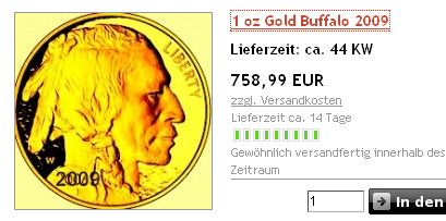 Den Buffalo 2009 gibt es jetzt für momentan unter 760 EUR bei PS-Coins: