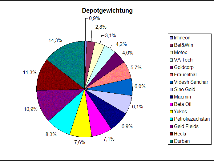 Ich muss dazusagen, dass sich darunter einige Leichen im Keller befinden (so z.B. Infineon) die ich jedoch aufgrund der beinahen Wertlosigkeit im Keller schmorren lasse. Bei Betandwin hat sich das Schmorrenlassen wirklich ausgezahlt ![]()