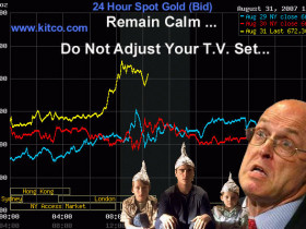 Die Großbanken jedenfalls decken sich nun massiv mit kurzlaufenden Zentralbankrediten ein und werden wahrscheinlich versuchen, in der nächsten Zeit ihre dafür hinterlegten Sicherheiten, vor allem in der Form von Aktien und Anleihen zu verkaufen. Vielleicht auch Gold, das man damit unter Kontrolle halten könnte. Den Subprime-Müll hingegen müssen sie wohl für längere Zeit in die eigenen Bücher nehmen und daran arbeiten, dafür erstmalig eine realistische Marktbewertung zu erzielen, was im besten Falle, also ohne weitere Crashattacken, zumindest einige Monate dauern wird, wahrscheinlicher sind aber einige Jahre.