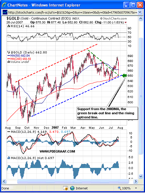 Für einen massiven Anstieg des Goldes vom gegenwärtigen Stand aus braucht es nach wie vor eine totale Panikstimmung auf den Finanzmärkten, also weit mehr als Subprime-Fiasko etc. Solange man täglich Billionensummen mit Gewinn auf dem Währungsmarkt verschieben kann, scheint mir diese Zeit noch nicht gekommen.
