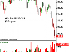 And finally, a revisit of Goldman Sachs (GS:nyse). Two weeks ago it was noted that Goldman's chart presented a "classic bearish case." GS has registered a ten percent decline since then. :D :D :D :P