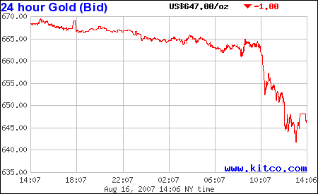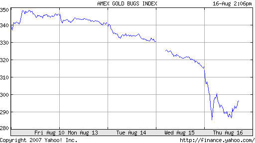 Ob diese Situation wirklich so rasch vorüber sein wird? Oder ob wir es jetzt mittelfristig nicht doch eher mit einer deflationären Interimsphase (einige Monate) zu tun haben, in deren Verlauf Gold und Goldaktien erstmal für einige Zeit (nicht nur einige Tage !) weiter unter die Räder kommen bzw. auf gedrücktem Niveau verharren? Vor November wird die FED wohl keine Zinskürzung vornehmen, um die Hausbesitzer zu entlasten. Die Inflationsängste rund um den Dollar, die maßgeblich für positive Spannung beim Gold sind, machen einem deflationären Ausverkauf Platz. Da könnte das Gold durchaus nochmals einen satten Abtaucher erleben, auch weil es sich zuletzt leider als immer noch extrem angreifbar gezeigt hat. $ 450 will mir dennoch nicht in den Kopf...