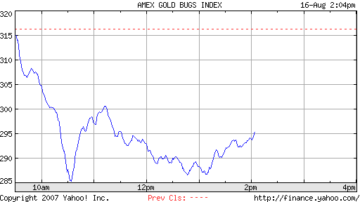 Auch der S&P und DJ kriegen eine drauf aber was mich schockt ist das der HUI im Vergleich zu den zwei um das 5 fache faellt.