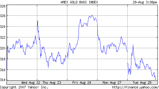 Das Problem ist jedesmal wenn der DJ oder S&P faellt dann geht der HUI mit in den Keller. Stellt Euch vor der DJ faellt um 1000 und mehr punkte, wo steht dann der HUI. Solange das so ist sind alle PM Minen am fallen so wie gestern.