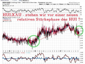 Man bekommt den Eindruck, dass der HUI gegenüber dem XAU wieder besser rennen dürfte, mittelfristig!