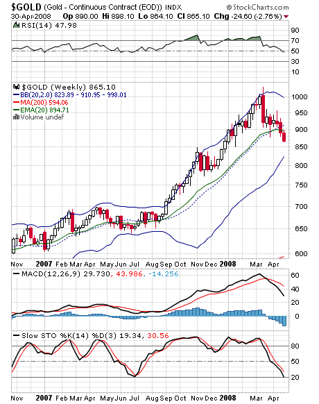 Zu dem Bollinger Band: So wie es aussieht ist der Kurs auf den Weg den unteren Bollinger zu erreichen. Ziel daher: ca. 840 US DOLLAR.