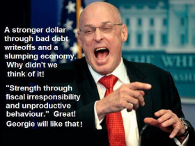 Jeder, der rechnen kann, der weis doch daß, was das Welt-Finanz-System und die Geldwertstabilität angeht definitiv Ende im Gelände ist. Die zu erwartenden Verluste und Forderungsausfälle können weder banken noch Staaten schultern, ohne daß das gravierende Konsequenzen haben wird. Steigen die Geldmengen fünf bis achtmal stärker, als das Wachstum, muss jedem mit wirtschaftlichem Sachverstand klar sein, was dann passieren wird: Geldentwertung und völlige Auszehrung der Unternehmungen und der Volkswirtschaften. Zu gut Deutsch: deflationärer Crash gegen echtes Geld, gemeint sind physisches Gold und mit Einschränkungen noch physisches Silber, dass leider viel zu knapp ist, um im internationelen Maßstab noch monetäre Funktionen übernehmen zu können. Und eine weltweite Verarmung, die erschreckende Ausmaße annehmen und Unruhen nach sich ziehen kann. Auch hierzulande.