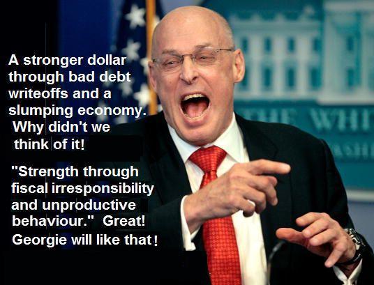 Jeder, der rechnen kann, der weis doch daß, was das Welt-Finanz-System und die Geldwertstabilität angeht definitiv Ende im Gelände ist. Die zu erwartenden Verluste und Forderungsausfälle können weder banken noch Staaten schultern, ohne daß das gravierende Konsequenzen haben wird. Steigen die Geldmengen fünf bis achtmal stärker, als das Wachstum, muss jedem mit wirtschaftlichem Sachverstand klar sein, was dann passieren wird: Geldentwertung und völlige Auszehrung der Unternehmungen und der Volkswirtschaften. Zu gut Deutsch: deflationärer Crash gegen echtes Geld, gemeint sind physisches Gold und mit Einschränkungen noch physisches Silber, dass leider viel zu knapp ist, um im internationelen Maßstab noch monetäre Funktionen übernehmen zu können. Und eine weltweite Verarmung, die erschreckende Ausmaße annehmen und Unruhen nach sich ziehen kann. Auch hierzulande.