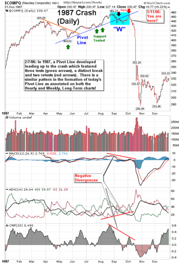 " The short-term topped on the 5 up run on Wednesday's (4/19/06) 5 up run and is bearish again. The short-term will bottom on XXXX (and above USERX 15.18) probably at the end of XXXX. Gold should bottom at the same time around XXXX, but this is all so obvious that I am concerned that I will be wrong. Then the short-term will bottom and the next even more explosive rally will commence. I've revised my upside targets from USERX XXXX to USERX XXXX over the next two months and gold to surpass XXXX, targeting around XXXX. And then we MAY witness the great crash of 2006 in all markets (I believe the goldies will crash for XXXX, but my gut suggests that the stock markets will decline in unison, so watch out for exactly XXXX daily rises in the stock market and Jeff's call of that this XXXX. My bullish long-term stock market prediction from the 5 consecutive down day bottom following 9/11/2001 will then end;"