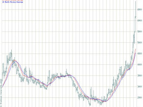 Seit 2002/03 haben wir einen Bullenmarkt bei fast allen assets. Der sollte nun zu Ende gehen. Außer beim Gold. Trotzdem kann im schlimmsten Fall der Aufwärtstrend von 2003 getestet werden. Der ist jetzt bei ca. $450 und Ende 2006 bei ca. $500. HUI relativ zum Gold in einem low 0.4, würde heißen im schlimmsten Fall 200.
