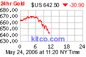 May 23, 2006On May third my article Gold Is Getting Overbought was published on all of the leading gold websites. In it I wrote, "over the next few weeks I expect the metal to pull back and provide an entry point in the gold stocks."
