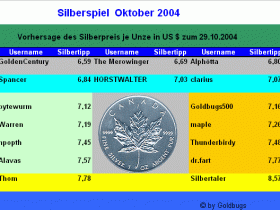 Bitte gebt wegen der Chancen Gleichheit den Tipp per [Blockierte Grafik: http://www.goldseiten-forum.de/images/pm.gif] an Goldbugs500 ab.... so weiß vorher keiner wie der andere sich positioniert hat...