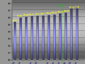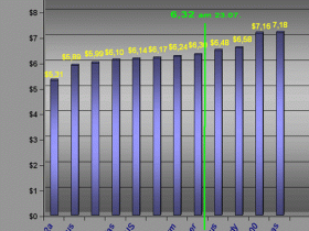 Der unterschied zwischen Low and High... beträgt diesmal 1,87 $...Zur Errinerung, im Mai waren es noch über 5 $....Im Bereich zwischen 5,89 und 6,24 gibt es eine reges gerangel...