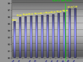 Der unterschied zwischen Low and High... beträgt diesmal 1,87 $...Zur Errinerung, im Mai waren es noch über 5 $....Im Bereich zwischen 5,89 und 6,24 gibt es eine reges gerangel...