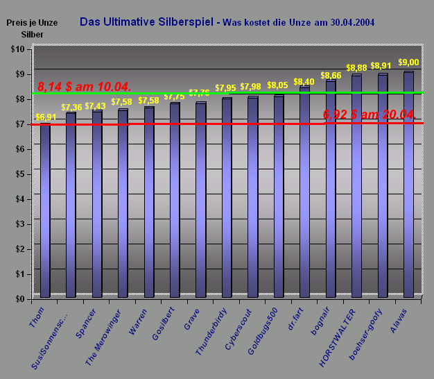 Der Silbermarkt ist so eng, daß die Möglichkeit besteht, das der Kurs innerhalb von nur ein paar Stunden auf 10 $ die Unze Explodieren kann.