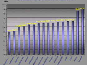 Insgesamt beteiligten sich 16 User. Der Mittelwert all unser Silber Experten beträgt Ø 6,93 $!