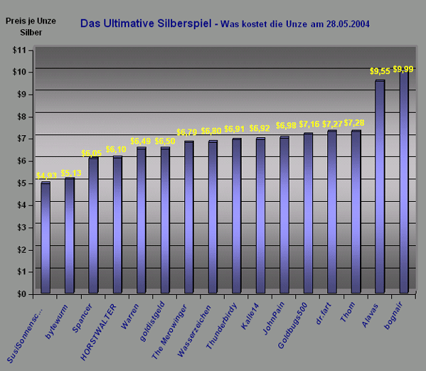 Ich sage: 7,16 $ für eine Unze Silber 9999 am 28.05.2004