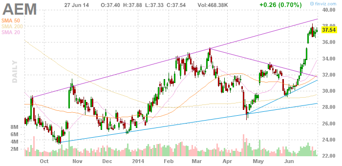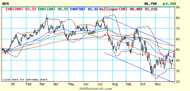 Here are other commodity and energy names that show good upside potential in the weeks ahead: ... Glamis Gold (GLG:NYSE) and Agnico-Eagle Mines (AEM:NYSE).