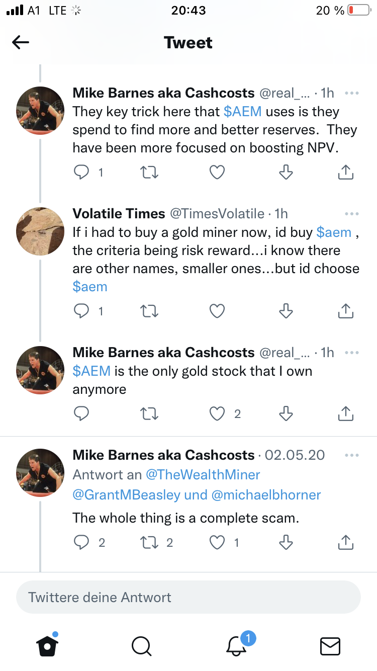 Agnico Eagle is ja einer der Top-Majors. Nun les ich - hab ja keine Ahnung - auf Twitter folgenden Beitrag. Ich denke wir haben hier genügend profunde Experten die hier genauen Ein- und Überblick haben und vielleicht kann ja jemand bewerten, was da so auf Twitter geschrieben wird. Scheinbar liegt es an den steigenden Schulden aber wie gesagt ich hab zuwenig wissen, dies zu beurteilen aber hatte $AEM bisher ganz oben auf meiner Shopping Liste und nun bin ich etwas verunsichert.