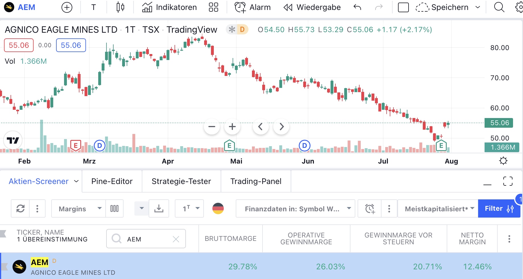 starke Zahlen in diesem Umfeld. @Vassago..super kurze Analyse, extra Klasse von dir. Danke. Ich habe hier nachgelegt...Wir haben vom Hoch zu Tief jetzt ca. 56% korrigiert. Sollte Gold wirklich zur alten Stärke zurückfinden, dann sollte es gewesen sein. Agnico und Co gehören einfach dazu! Ein bißchen wieder Aufstockung muss sein.