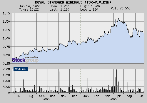 ROYAL STANDARD MINERALS INC - RT Kurs Autor: iqfan · Forum: Gold, Silber, Minen, Explorer 14 SeitenweiseGanzer ThreadPosting für PostingSeitenweise rückwärts 12.06.06 12:45:18