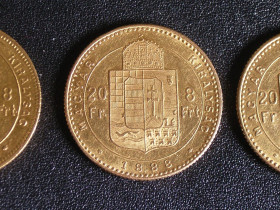 Ungarn: 8 Forint (20 Fr.) - drei verschiedene Prägungen (1872, 1888, 1890)!