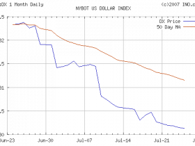 Den Inhalt dieses Artikels - Das Ende der grossen Welle - kombiniere ich mit den Tagen um den 24.07.07 bis 27.07.07. An diesen Tagen aktiviert Mars per T-Quadrat die zurückliegende Saturn/Neptun Opposition, die ich als Liquititätsengpass bezeichnete. Es wird also eng auf dem Kapitalmarkt insofern dass die Kreditrichtlinien anderen, strengeren Kriterien unterworfen werden. Die Zunahme der Furcht, der Abverkauf des Dollars und die Suche nach neuen Gewinnen wird die Verwalter von Geldfonds in die Edelmetalle treiben.