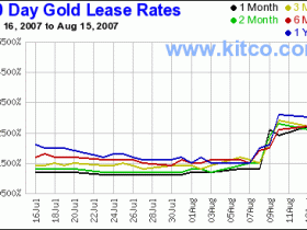 Am 11.August 1999 bemerkten Marktteilnehmer und Analysten eine wachsende Anspannung der Marktlage, als die 6-Monats-Leasingrate auf 4,12% stieg. Der Goldpreis notierte zu diesem Zeitpunkt bei 257.-$ ( 17°Schütze ) je Unze. Die Schlussfolgerung war, das der Leasing-Markt an Attraktivität verloren hatte. Doch als die Zentralbanken beschlossen, die Verkäufe zu begrenzen, sprang der Goldpreis innerhalb weniger Tage auf über 330.- $, und die Leasingrate stieg auf 9%, was darauf hindeutete, daß eine ernste Krise am Horizont heraufzog. Das war offensichtlich der Moment, in dem sich die dunklen Wolken über den Goldmarkt aufzulösen begannen. Tatsache bleibt jedoch weiterhin, daß der größte Überhang nicht aus Notenbank-Verkäufen stammte, sondern aus Notenbank-Ausleihungen.- als Gold-Carry-Trade bekannt, den Lips als einen Nachfolger des Yen-Carry-Trades bezeichnete.