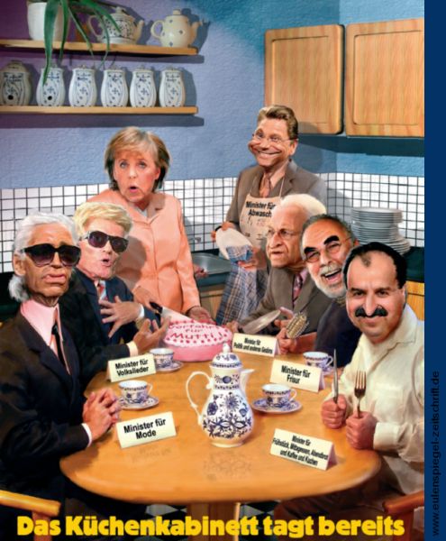 Merkels Vater zählte zu den Kirchenvertretern, die unter dem Schlagwort "Kirche im Sozialismus" einen Kurs vertraten, der Loyalität zum SED- Regime und Kirche miteinander verband. Ihr heutiger Kurs ist nichts anderes, nur unter anderen Vorzeichen. Es regiert uns also keine Frau Merkel – sondern die Vorstellungen von Merkels Vater; dessen Erbe, das sie ungelöst mit sich herumträgt. So dass die hohen wie unförmigen Hüften als Ausdruck der Unbeweglichkeit ein zusätzliches Gewicht erhalten.