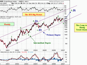 Eine Änderung würde ich daher gerne anmerken. Bisher bin ich davon ausgegangen, dass die Gegenbewegung bis 320 Punkte im HUI nach oben gehen könnte.