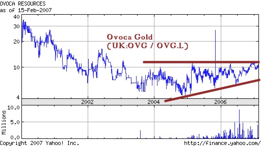 auf vielfache Anregung eines Einzelnen (Ulfur) eröffne ich einen Thread über Ovoca Gold PLC, eine Explorationsfirma, die sich aus einer ehemals Irisch-Schwedischen Gold-Silber Explorationsfirma in den letzten 12 Monaten gemausert hat zu einer eurasiatisch aufgestellten Explorationsfirma. Ich hab die Aktie der Firma seit Februar / März 2006 im Depot.