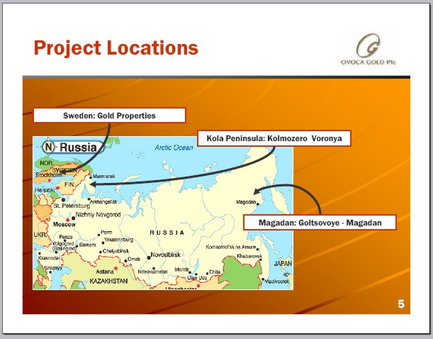 Es sind Ex-Leute der Oxus Gold, die sich im Frühsommer letzten Jahres in die kleine Ovoca Resources eingekauft haben, und zusammen mit der acquirierten, russischen Norplat mit Gebieten auf der Halbinsel Kola, und Teilen des Managements der Norplat, so eine völlig neu aufgestellte Firma in London an die Börse brachten.