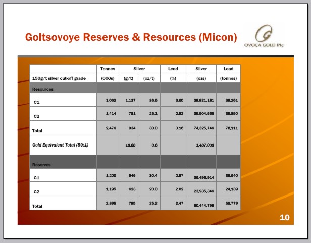 Ovoca Gold Should Have Full Bankable Feasibility Study For Goltsovoye Silver Project This Autumn.