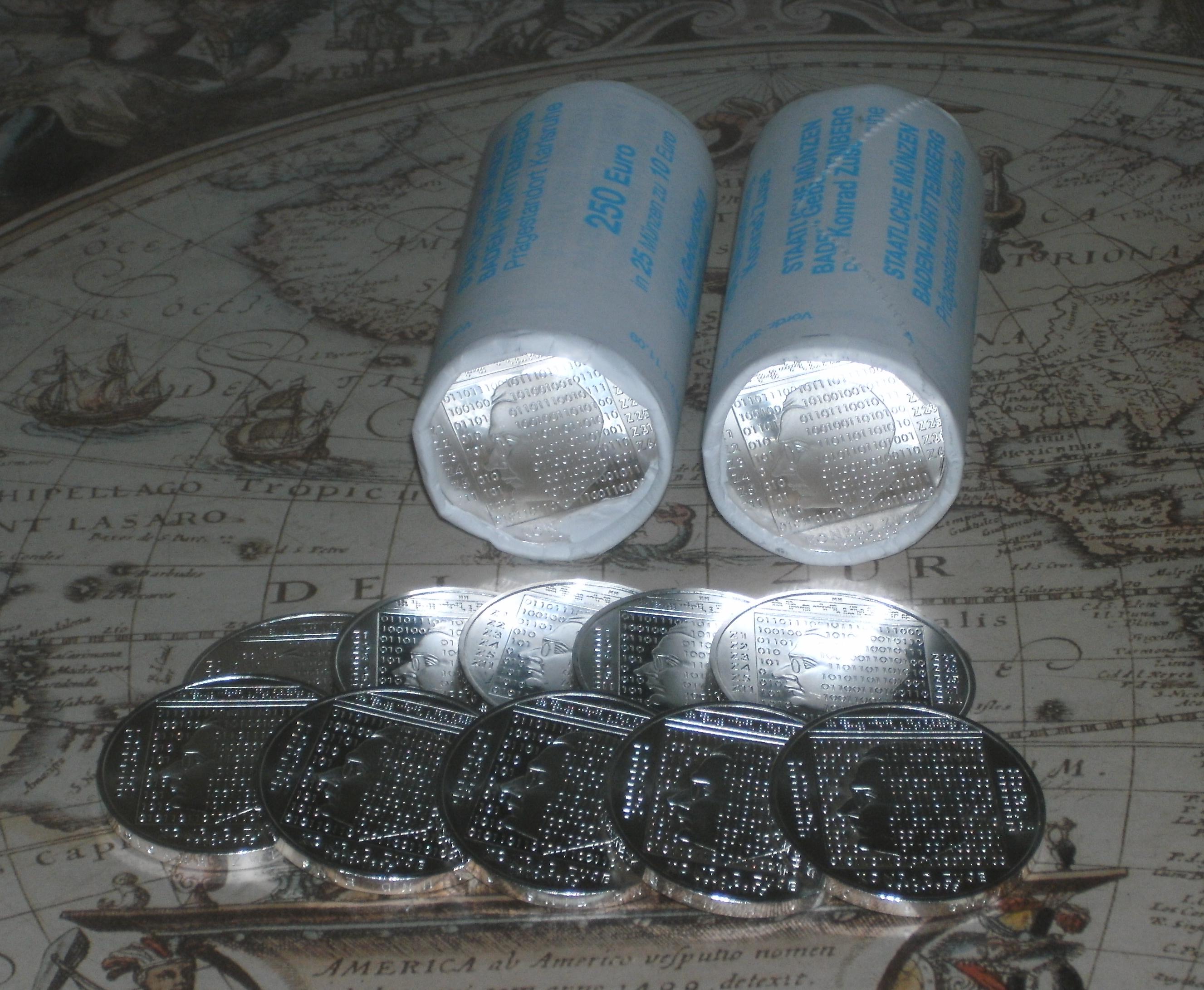 Erklär mir doch mal den Vorteil einer sogenannten Rolle gegenüber Einzelstücken. Die musst ja dann ebennso aufbrechen bei einem Währungsschnitt oder aber bei einer Hyperinflatione oder anderem. Einzig der innewohnende Silberwert ist die Krux letztendlich- naja noch die aufgeprägte 10 € Wertangabe. Zehnerle sind Mehrwertsteuerfrei, liegen aber immer noch unter dem eigentlichen Silberwert der 16,5 Gramm reinen Silbers. Damit also unter dem Silberpreis, selbst wenn man den aktuellen Preis bei ca 18- 19 Dollar pro Unze Silber ansetzt. Numismatisch gleich Null. Überteuert usw. usf.